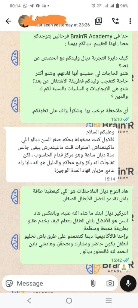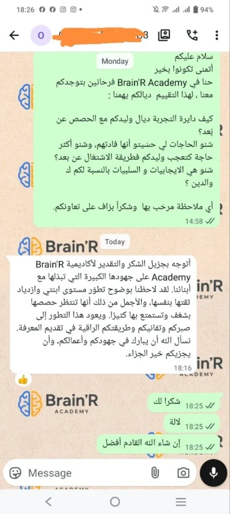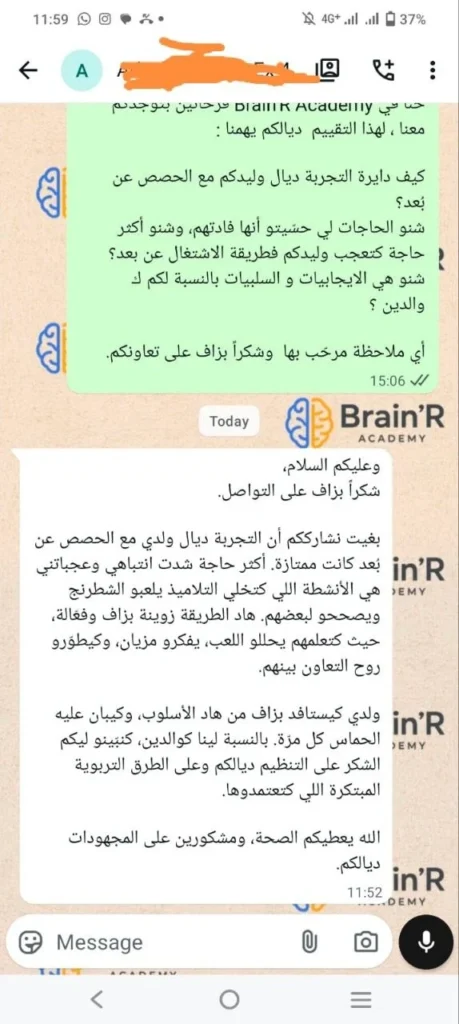 Brain’r رسائل من آباء وأمهات بعد تجربة برنامج